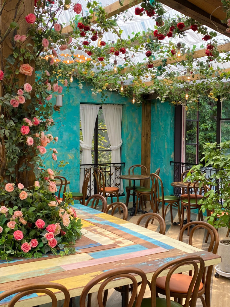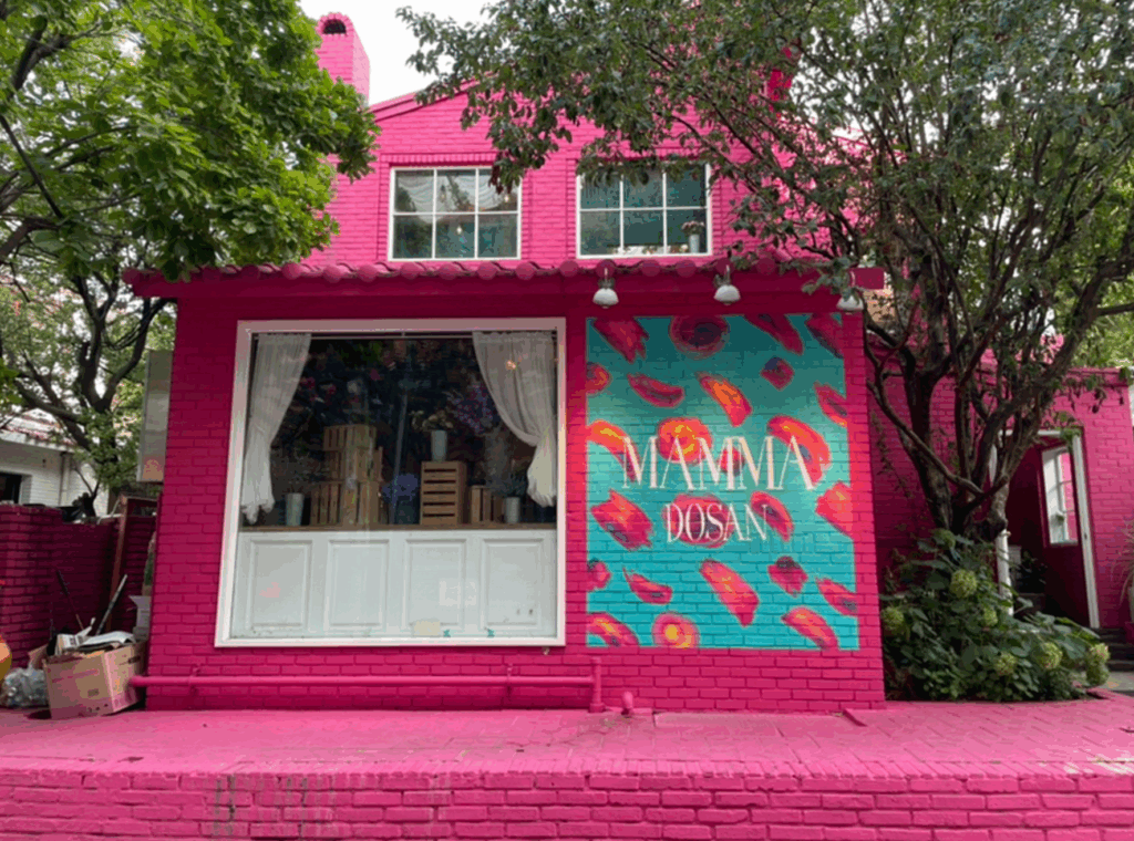 감각적인 핑크 톤의 외벽과 꽃, 식물로 채워진 실내가 조화를 이루는 공간입니다.청담의 세련된 분위기 속에서,감각적인 컬러와 디테일한 마감으로 브랜드의 아이덴티티를 담아냈습니다.
