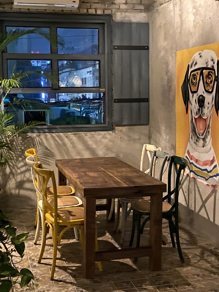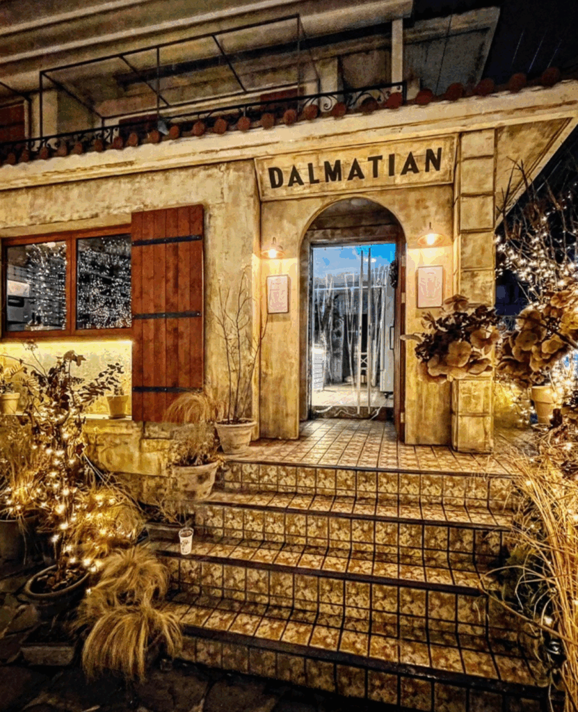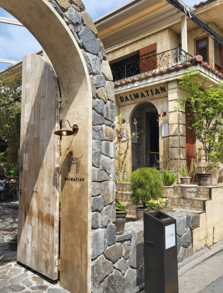 도산의 감각적인 거리 속에 자리한 달마시안 매장입니다.야외 테이블을 통해 개방감을 더하고,브랜드를 상징하는 달마시안 그림으로 공간의 개성을 표현했습니다.