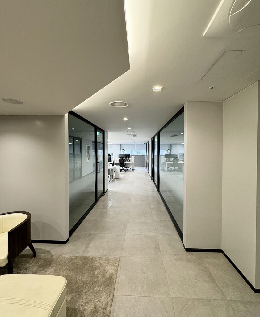 브랜드의 아이덴티티를 담은 모던하고 세련된 오피스 공간.