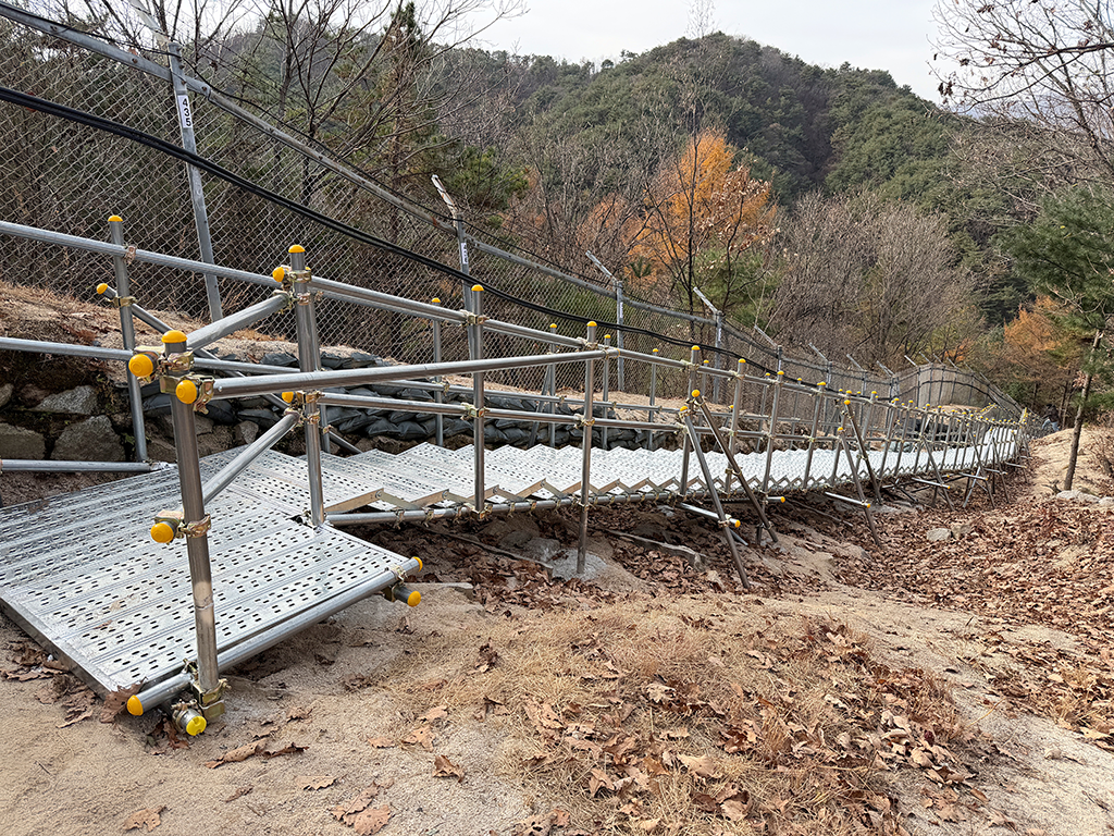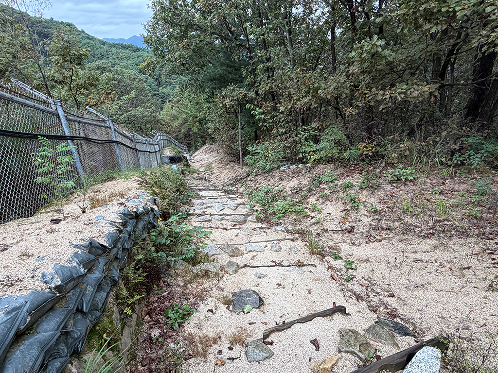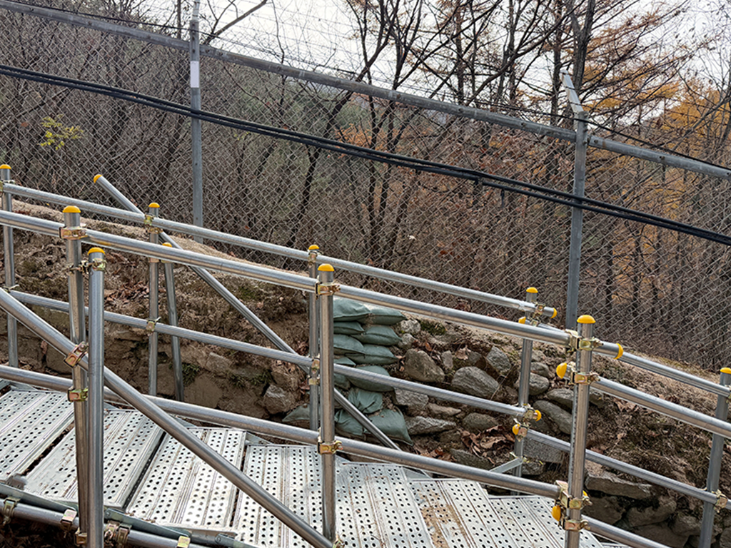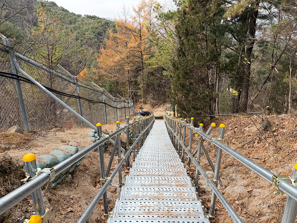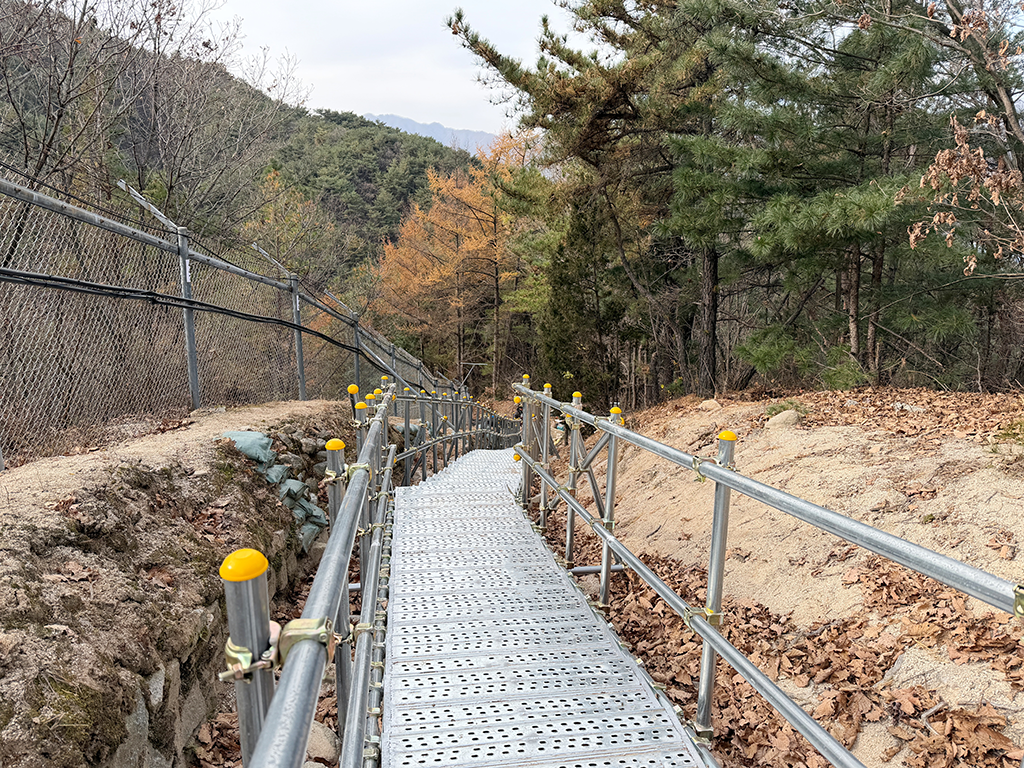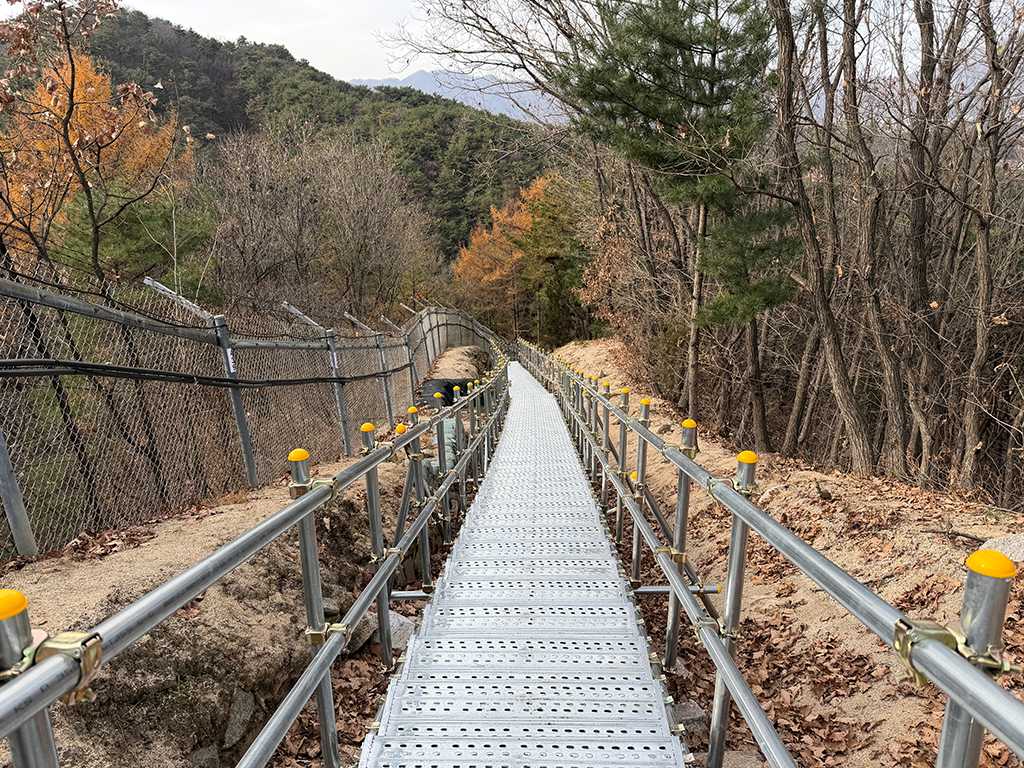 지형을 정비하고 배수 흐름을 고려한 구조로 시공하였으며,동시에 계단을 설치해 순찰 시 안전하고 편리한 보행이 가능하도록 개선했습니다.
