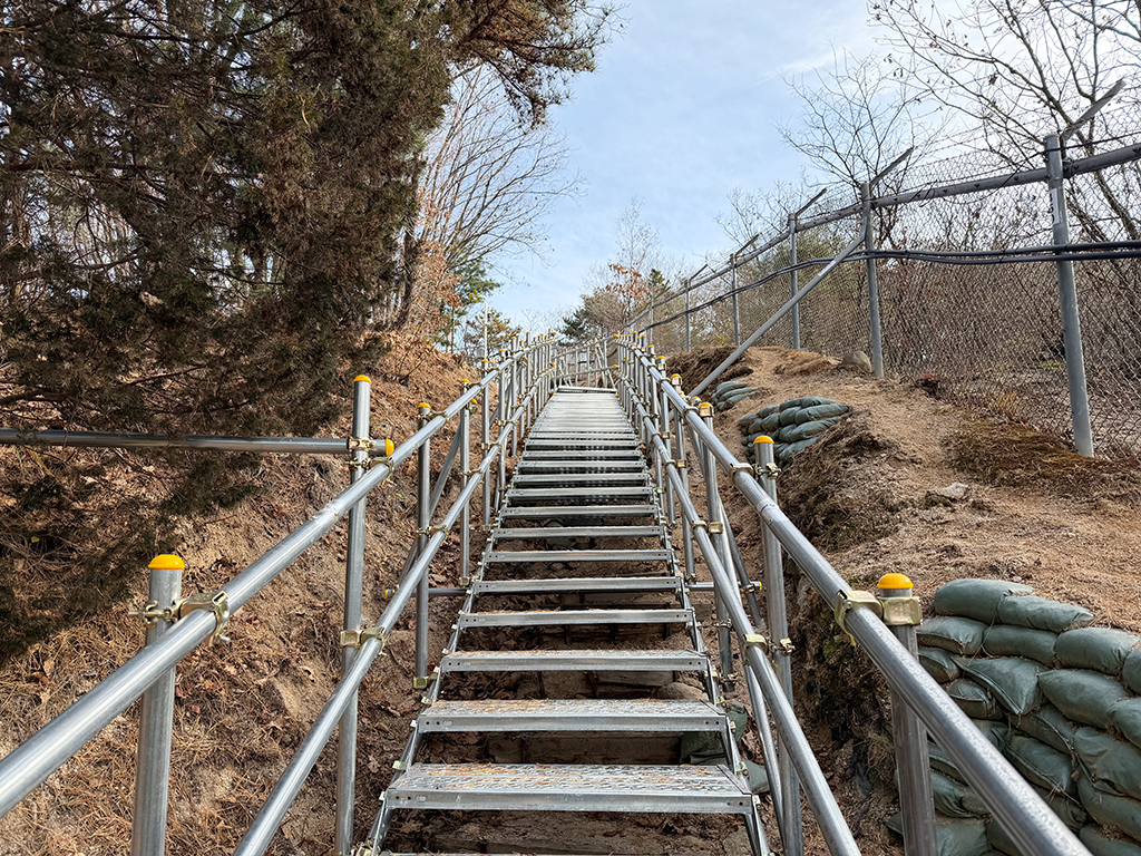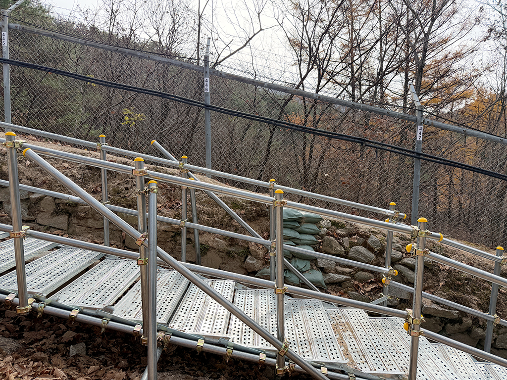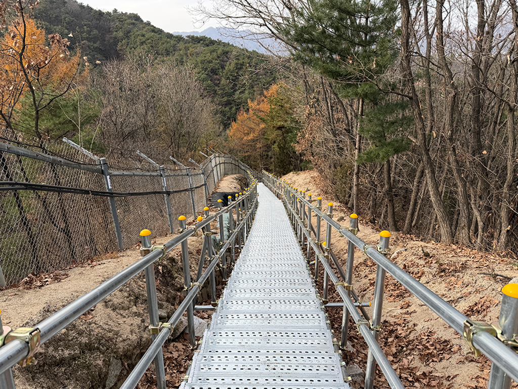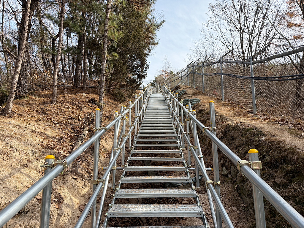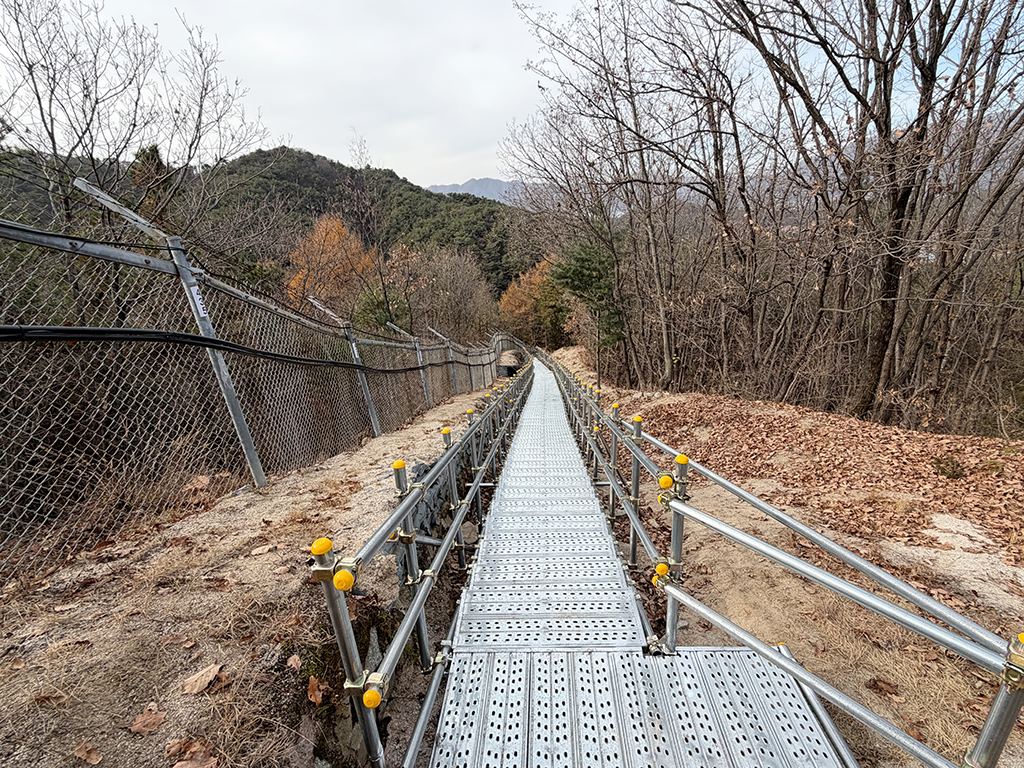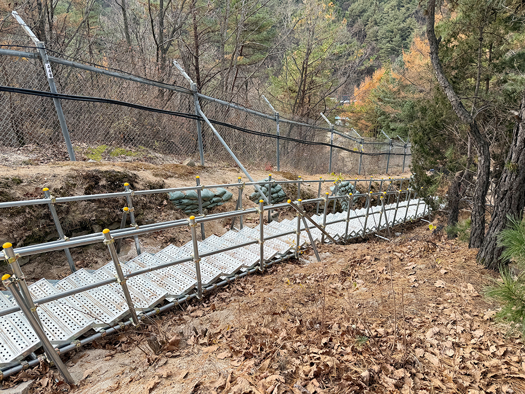 지형을 정비하고 배수 흐름을 고려한 구조로 시공하였으며,동시에 계단을 설치해 순찰 시 안전하고 편리한 보행이 가능하도록 개선했습니다.